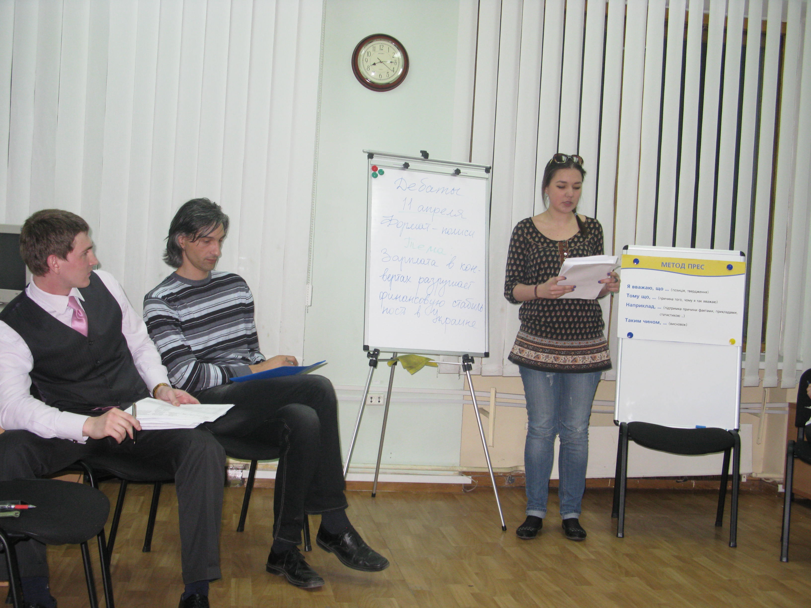 11 апреля 2012 года в Школе ораторского мастерства состоялись дебаты на тему: «Зарплата в конвертах разрушает финансовую стабильность Украины».